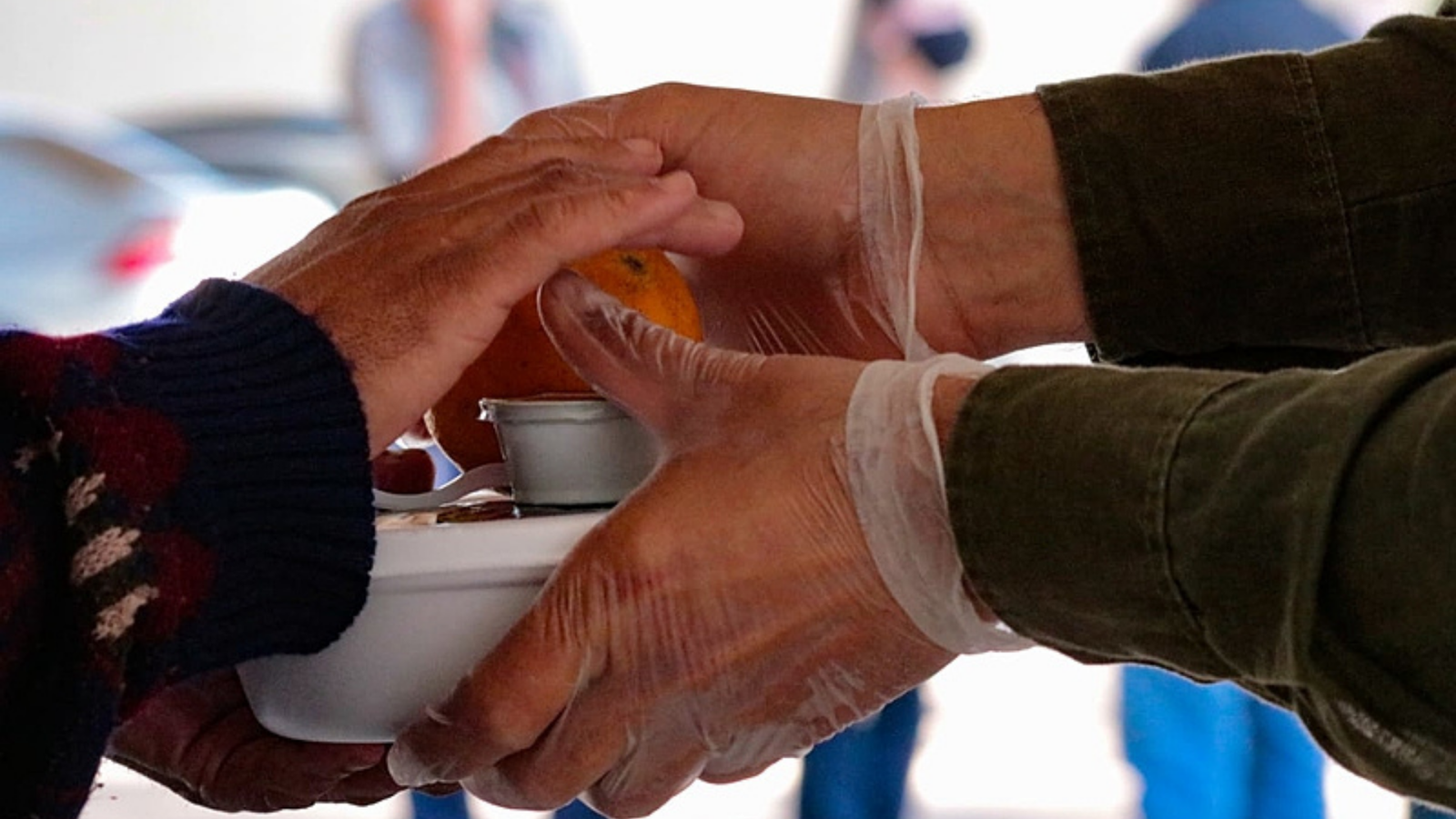 Entrega de marmitas a pessoas em situação de necessidade.